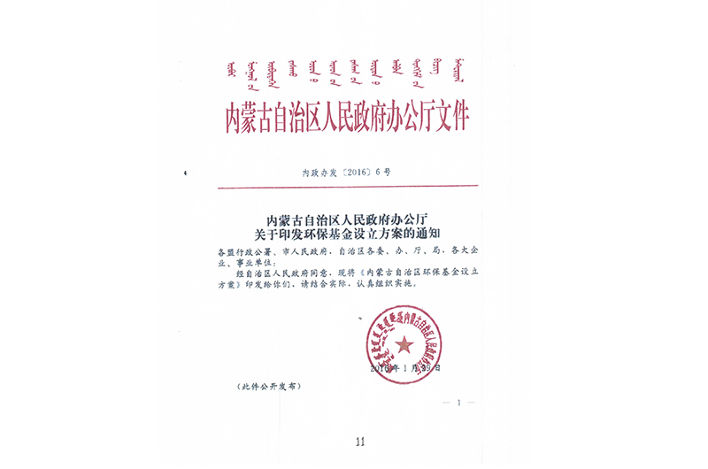 2016年1月29日,自治区政府办公厅印发环保基金设立方案的通知