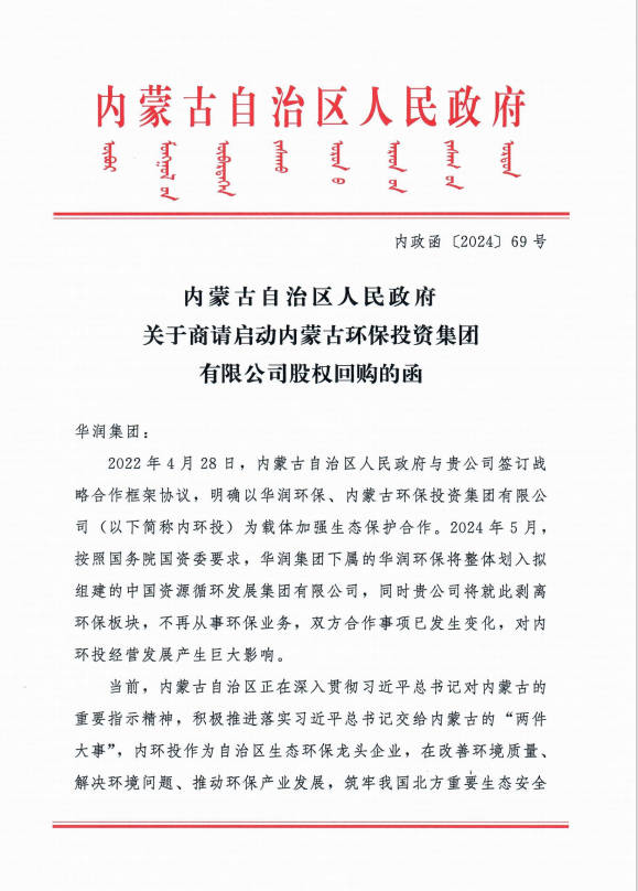 7月24日内蒙古自治区人民政府致函华润集团启动米兰网页版股权回购事宜。