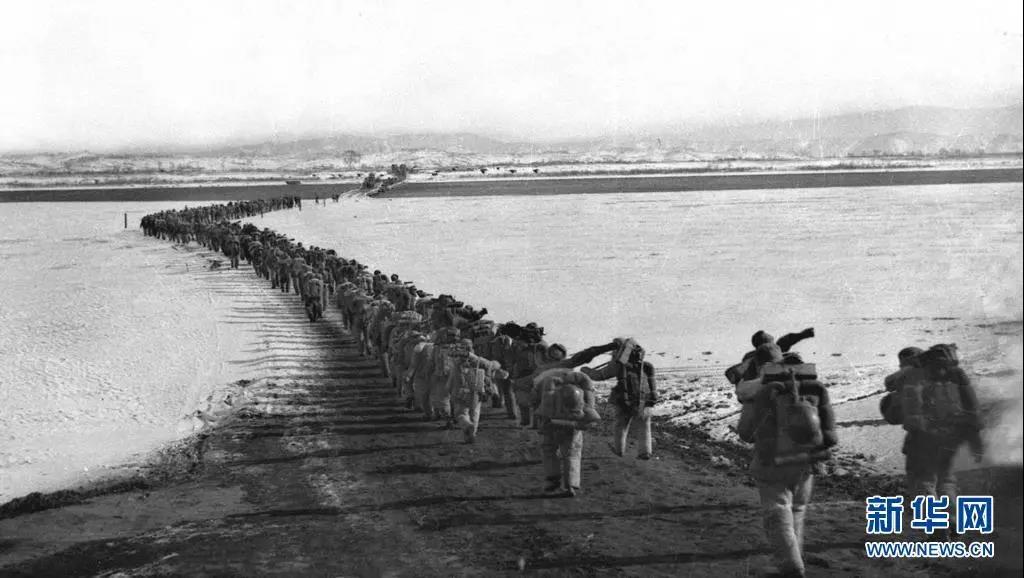 1950年10月19日,中国人民志愿军雄赳赳、气昂昂跨过鸭绿江,和朝鲜人民共同抗击侵略者。新华社发(黎民 摄)